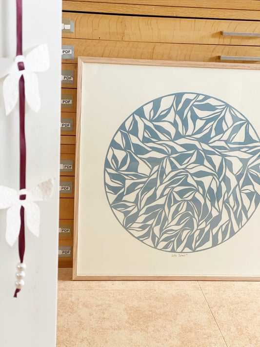 "Jeg skærer hvert et motiv i hånden, lag for lag, hvor lys og skygger danser mellem linjerne. Hvert et snit bærer en historie, en stille fordybelse - intet bliver helt som før, og hvert et værk er unikt"