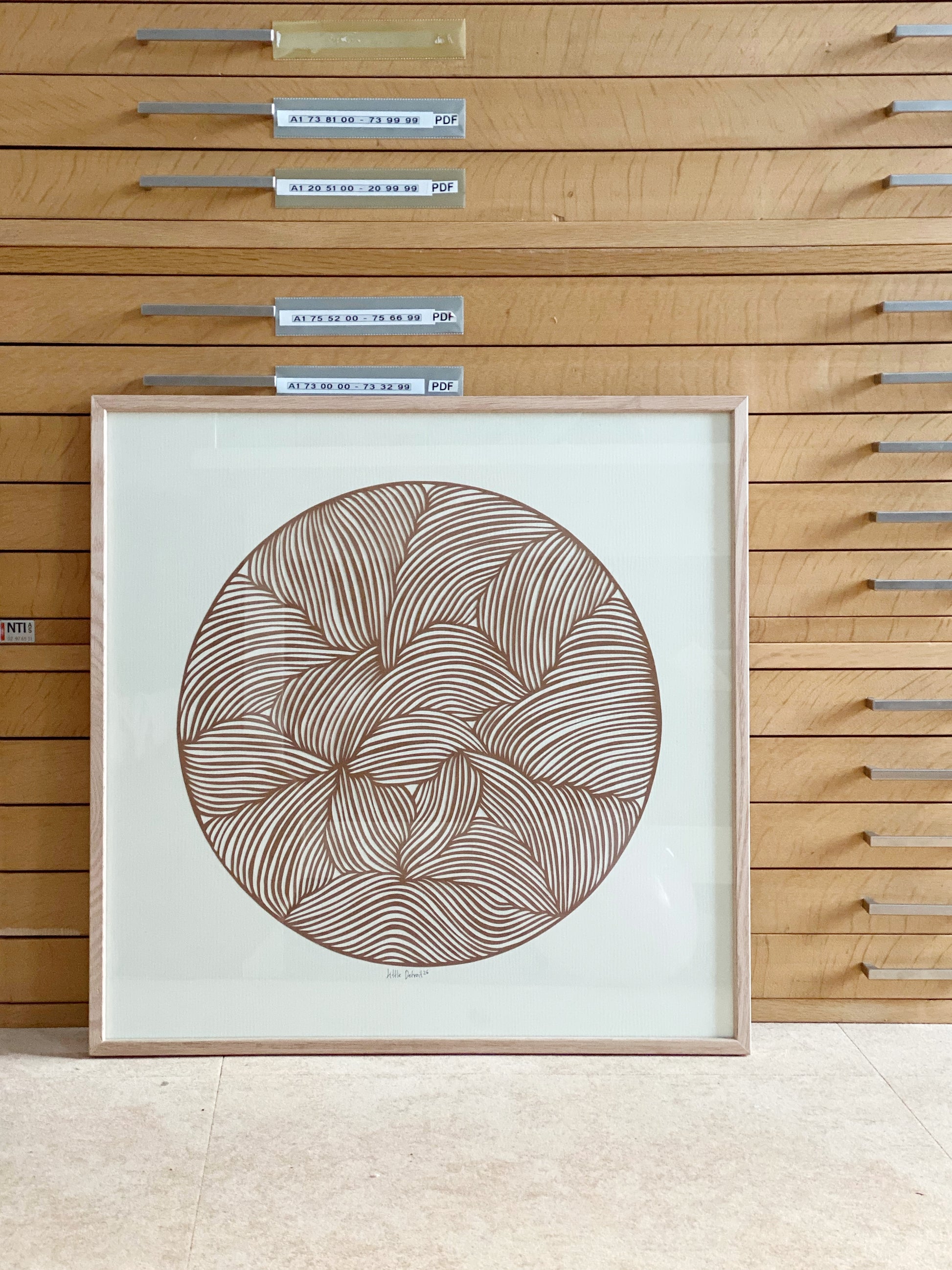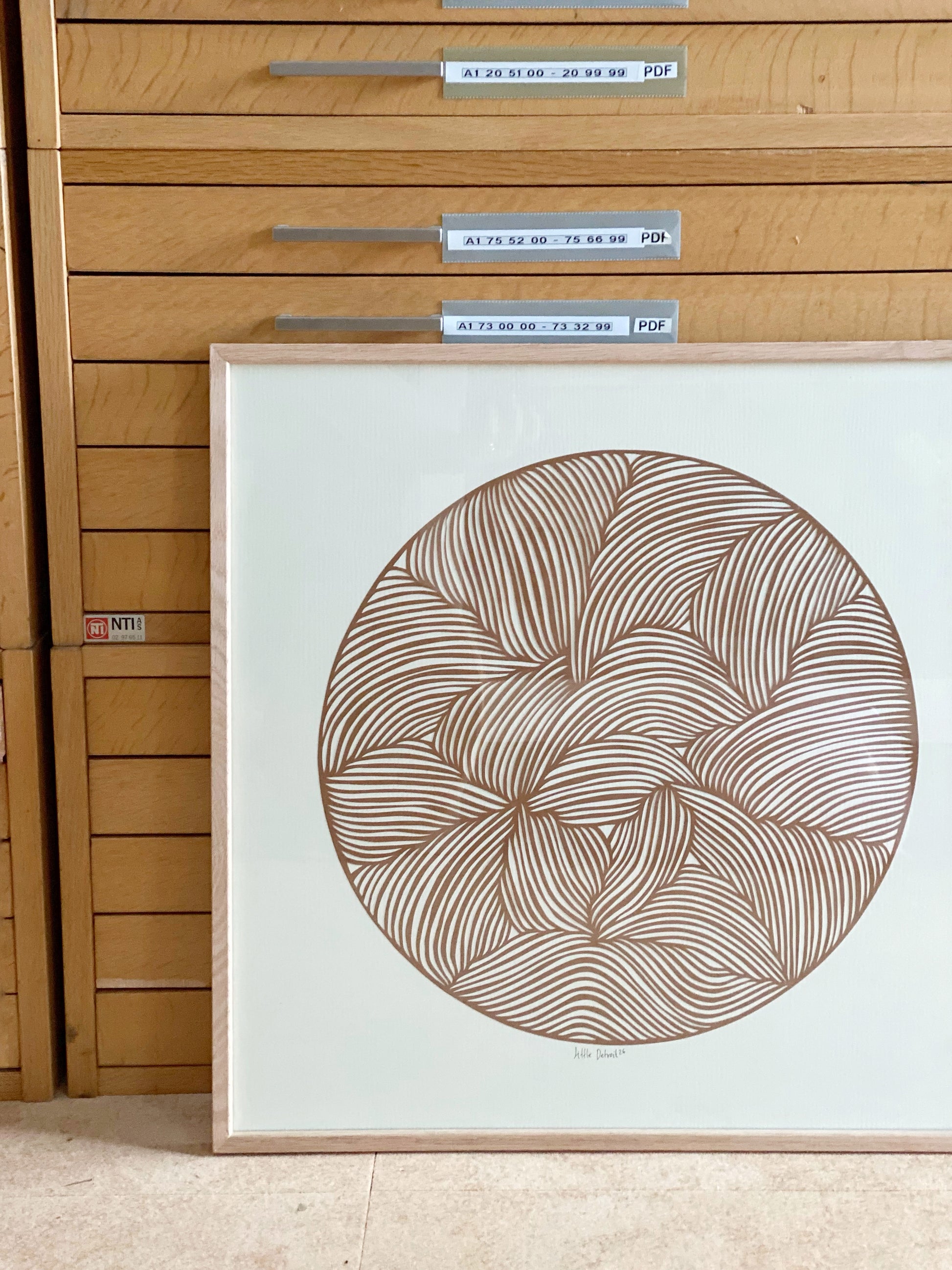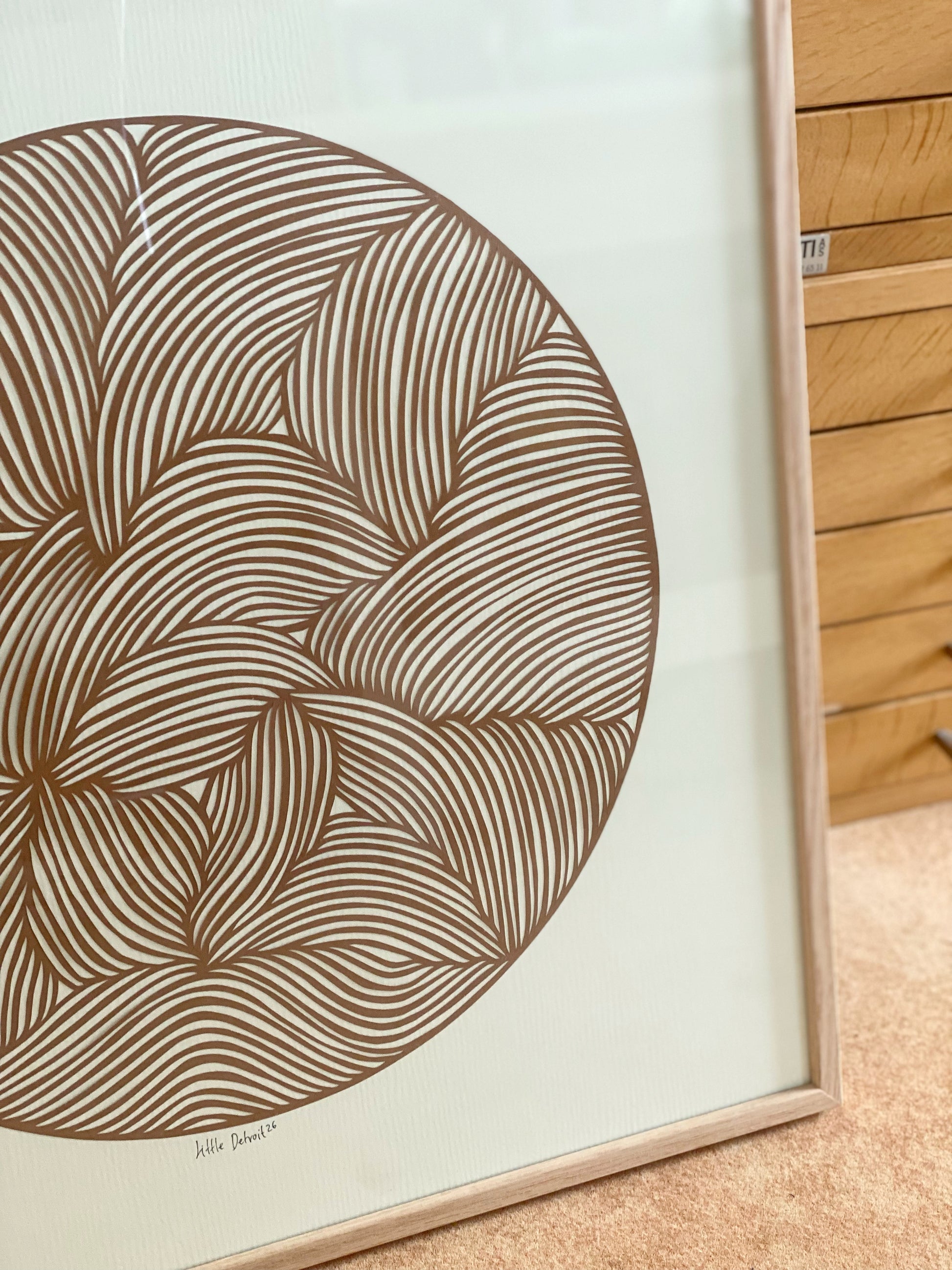50x50 brunt papercut på creme baggrund.
