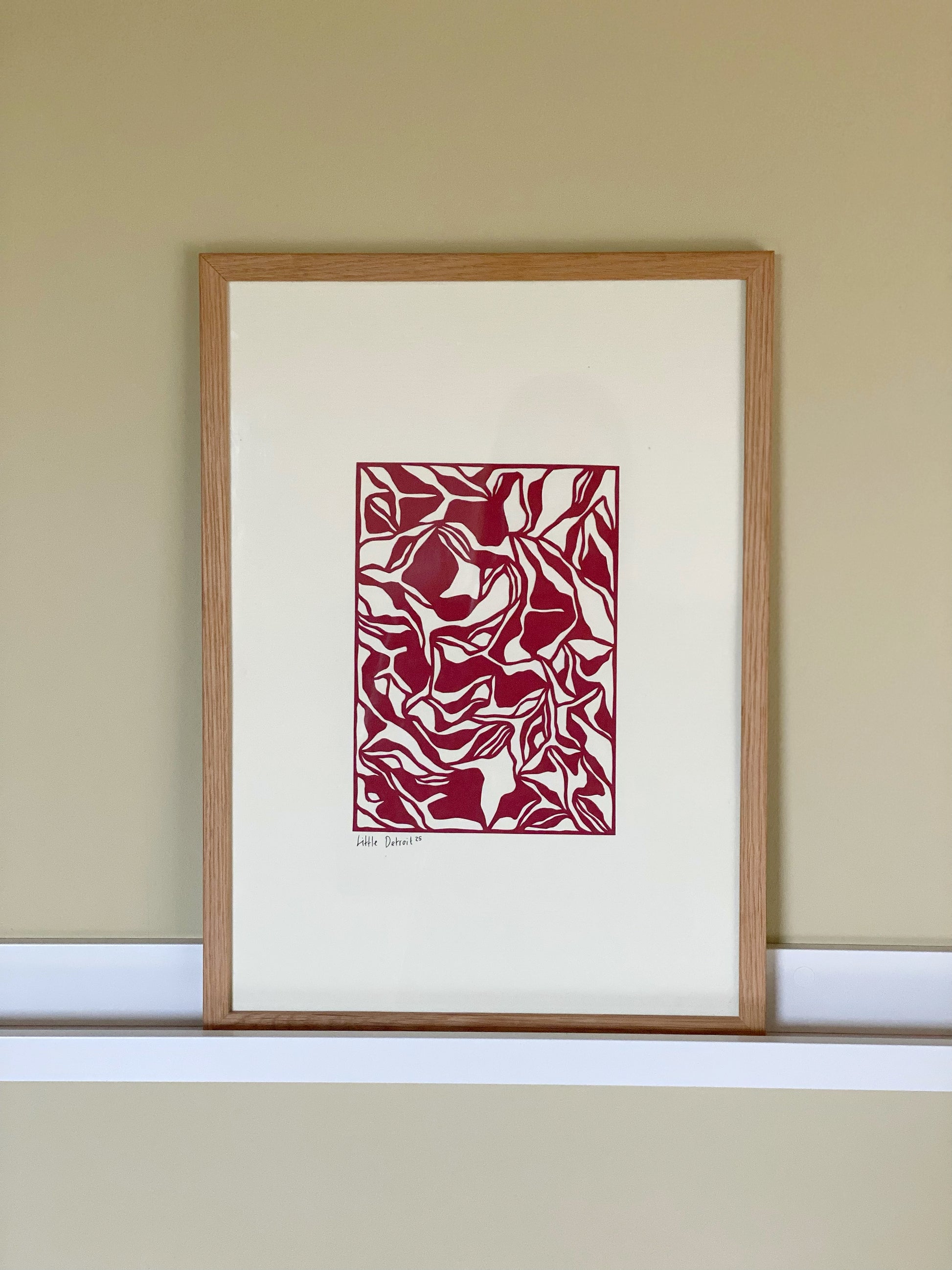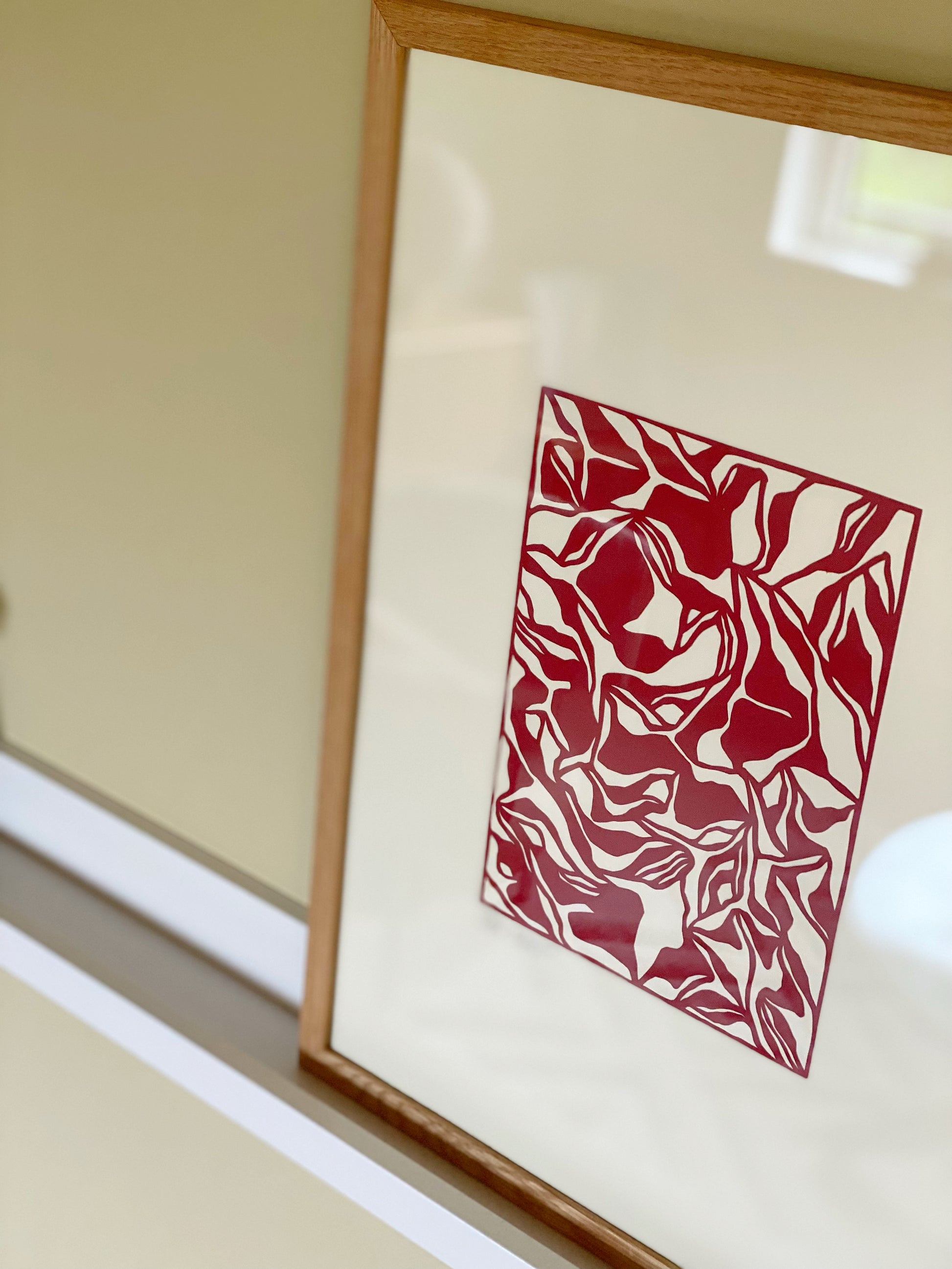 A3 Bordeaux papercut på creme baggrund.