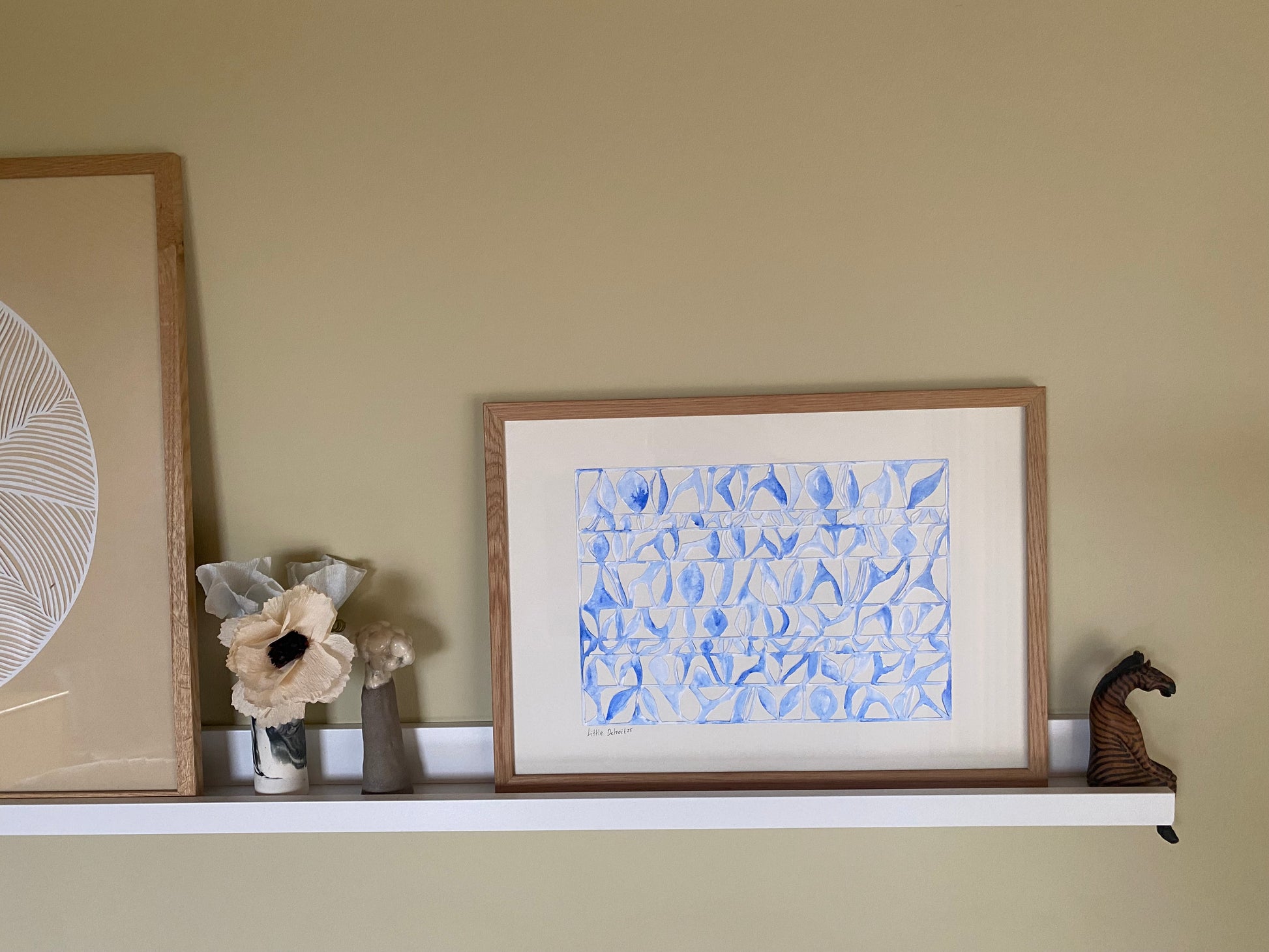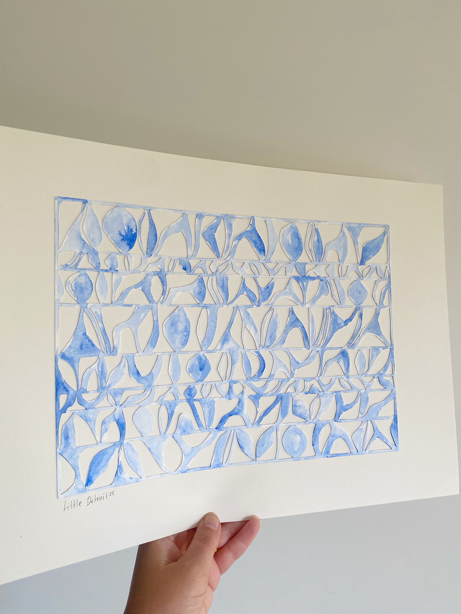 A3 I en kombination af akvarel og papercut i blå og creme.